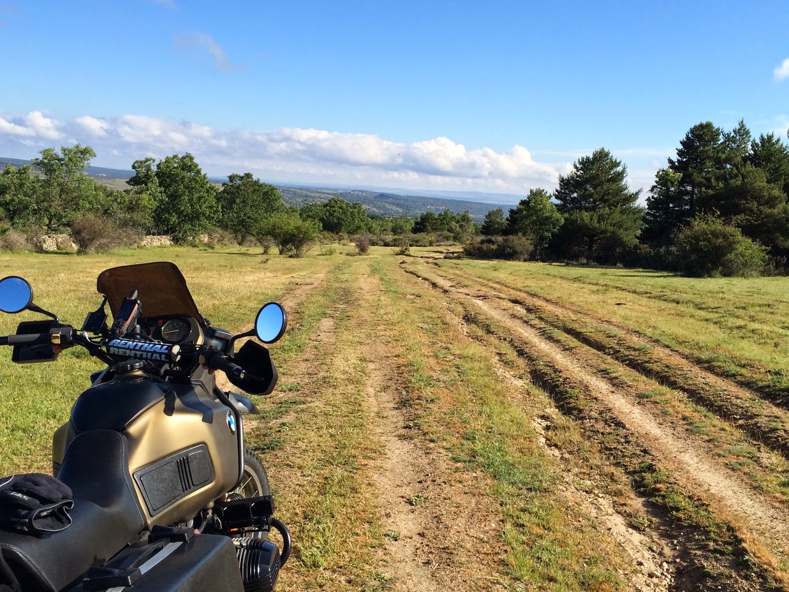 La cruzo y me dirijo un par de kilómetros dirección a Segovia, y allí arranca la pista elegida. Es zona de ganado y praderas, por lo que el terreno está bastante húmedo. Lo mejor para catar las cubiertas que he elegido. Auténtica prueba de fuego. También llevo el GPS Garmin 62 bien conectado a la batería… será el momento de comprobar si falla (se apaga o no). Ya avanzo que ha funcionado perfectamente. Así que sólo puedo decir una cosa: «Yeeeeeeha!» Porque el Garmin 62 para mi es el mejor GPS.