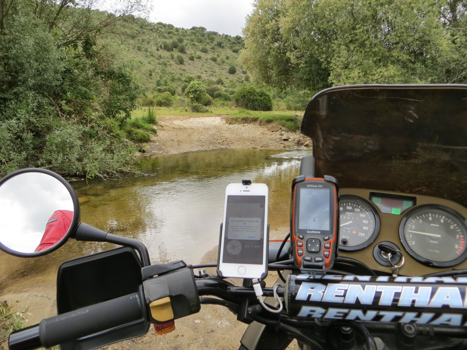 Tuve suerte porque, en ese momento de duda, llegó un grupo de endureros con sus ktm que cruzaron primero para que viera que el barro inicial no era muy profundo y que la salida de arena en curva podría pasarla bien… y si no, ellos me echarían una mano. Es la confianza que necesitaba para atravesar sin problemas el tercero y cuarto vadeo, en el que los cilindros bóxer estaban incluso sumergidos (lástima que con la tensión no hice fotos).