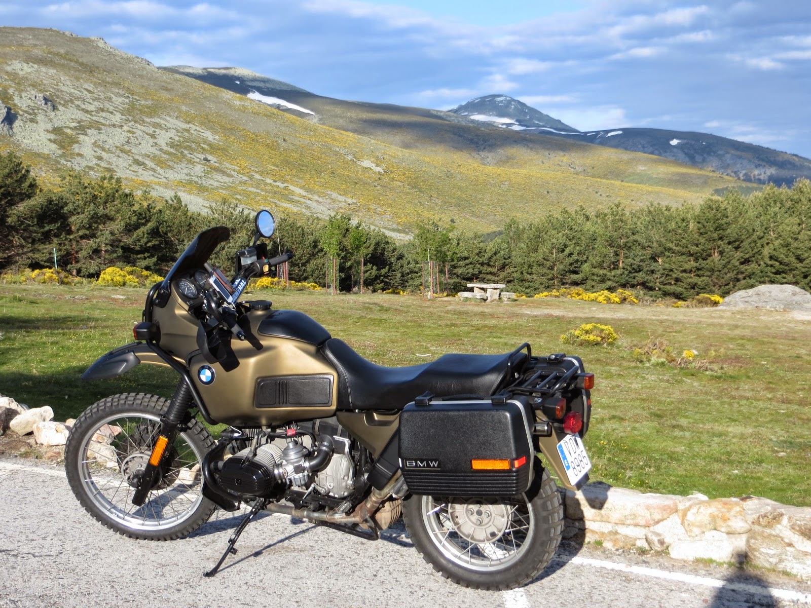 La parte mala es que al ser zona de ganado, las pistas estaban llenas de puertas que hay que abrir y cerrar. He podido comprobar que casi toda la zona de la falda del monte por la zona segoviana es así. En ocasiones, el camino estaba claramente marcado; en ocasiones, se trataba de una zona verde encharcada donde había que tener mucho cuidado para coger la rodera correcta y evitar cruces de rueda. Pero hay que reconocer que tanto la moto como las cubiertas han respondido a la perfección.