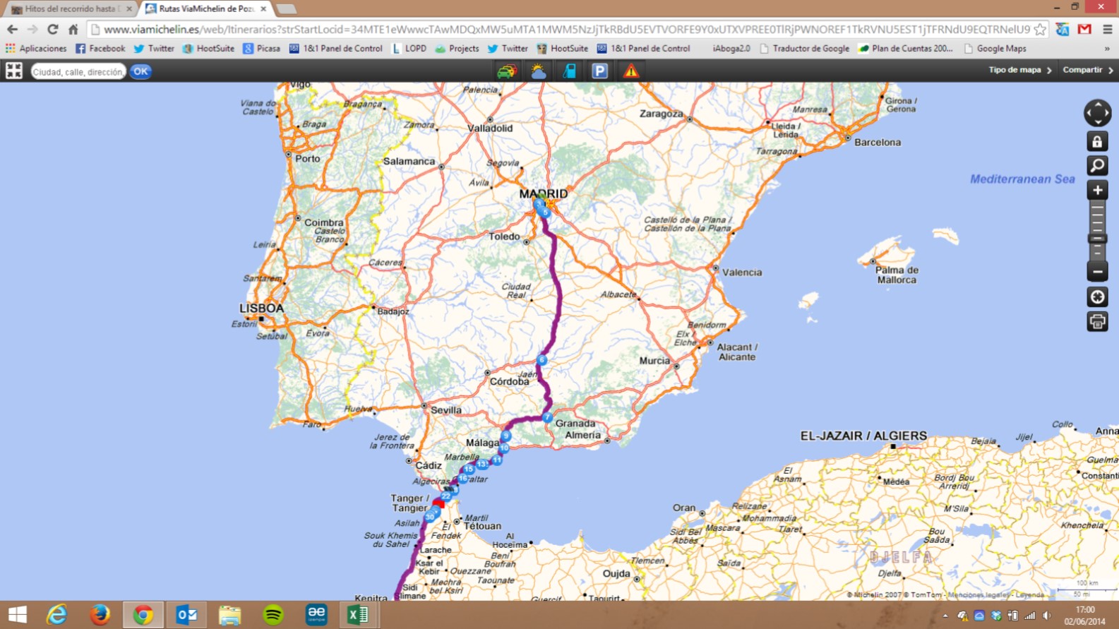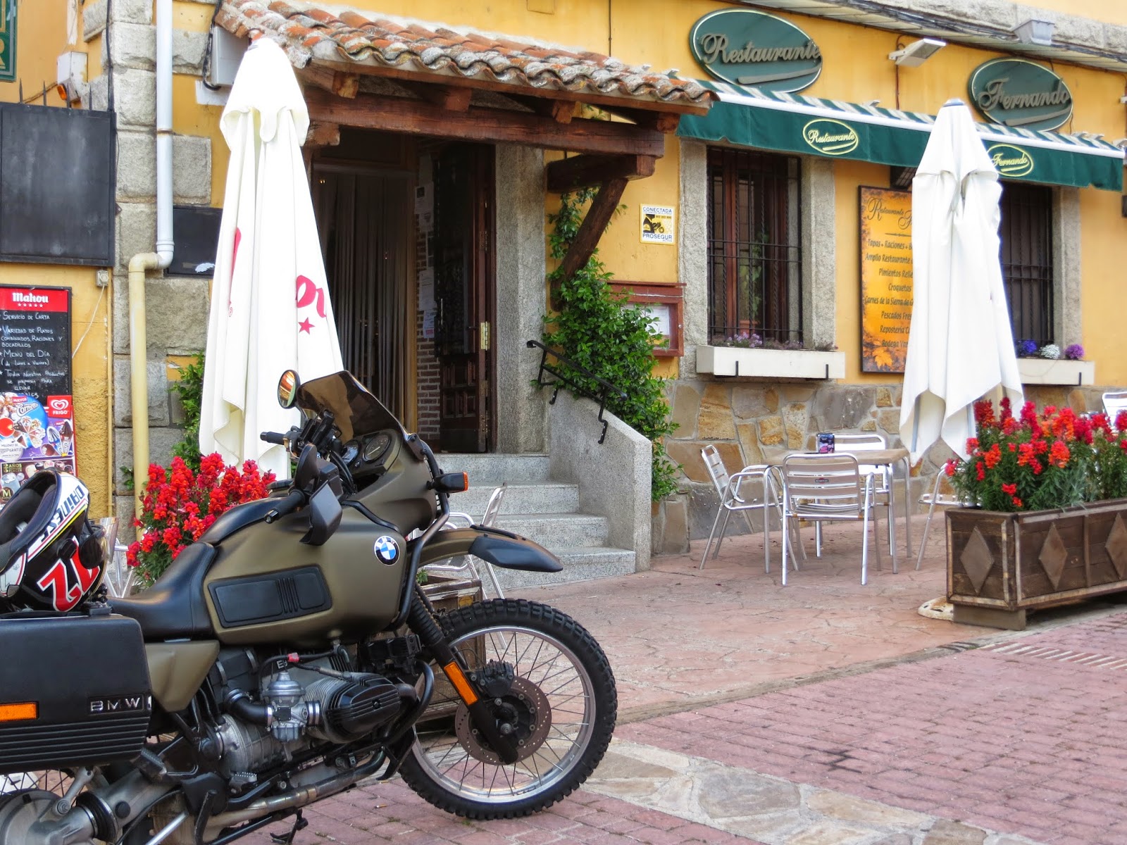 Ciertamente, estaba cansado. Este tramo me había desgastado bastante, y había invertido mucho tiempo en recorrerlo; así que a la salida, enfilé por la carretera de La Granja hacia Madrid haciendo un alto en Navacerrada, para tomar el último aperitivo antes de llegar a casa. Sería en el Reloj, el restaurante del conocido de un amigo. Y acerté. Media horita más tarde y con la satisfacción de que he terminado una moto fantástica que me va a dar un montón de satisfacciones. He acertado en todo: vehículo y kilómetros, así que… GAS HACIA EL HORIZONTE.