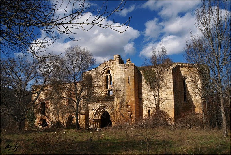 Al otro lado de la presa del Vado tomé la carretera hacia Retiendas. Esta vez no habría tiempo de caminar para visitar el monasterio de Bonaval (hay que caminar unos 2 kms al cruzar el puente que hay justo antes de llegar al pueblo). Es una preciosidad y una pena que se encuentre en ese pésimo estado de conservación. Para una excursión de día completo, sin duda recomiendo bajarse de la moto y acercarse.