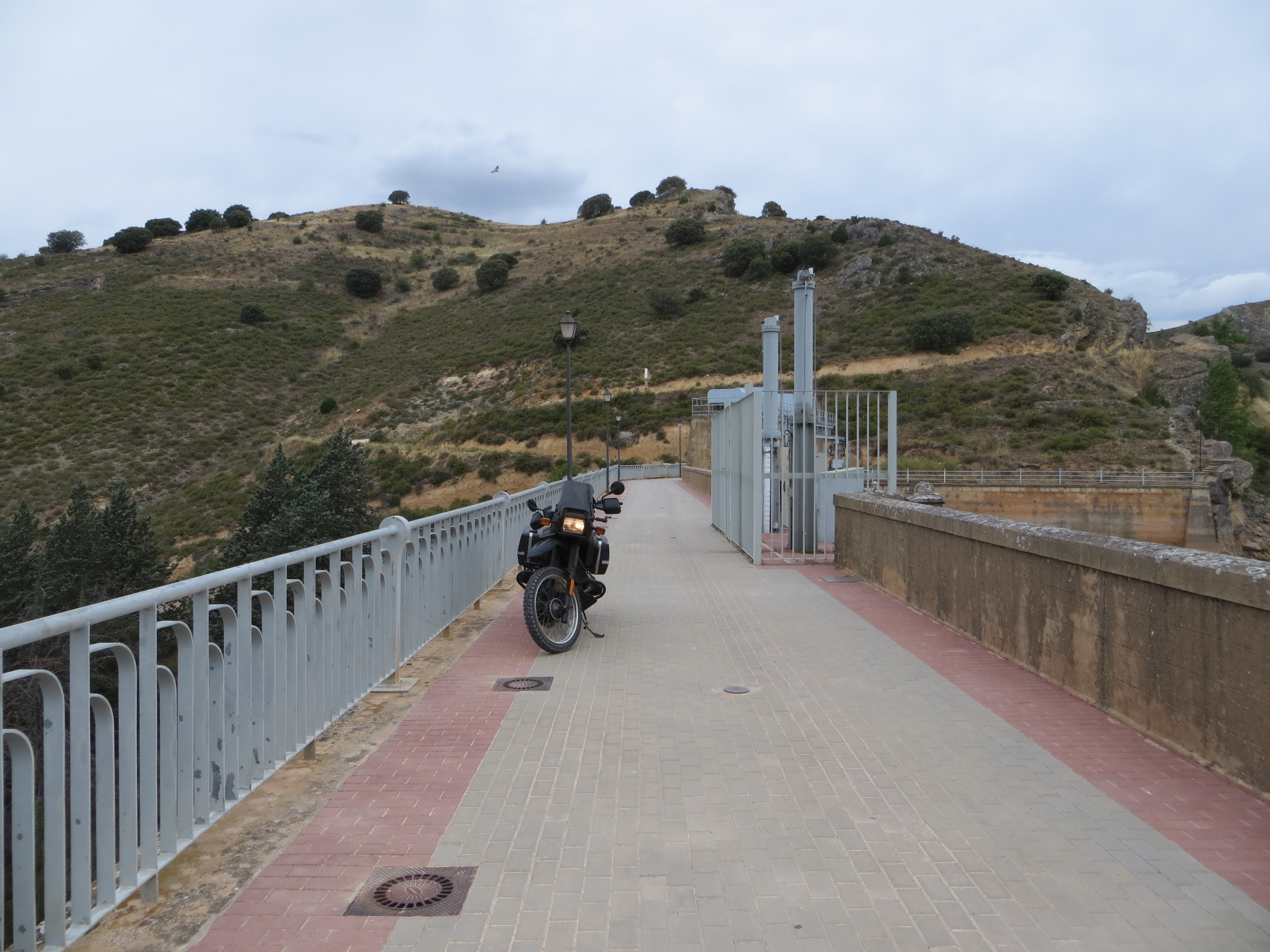 De nuevo en ruta, por camino primero y carretera después, llego al embalse de Alcorlo; que debe rodearse obligatoriamente por carretera. La zona de la presa, bien merece una parada y una foto.