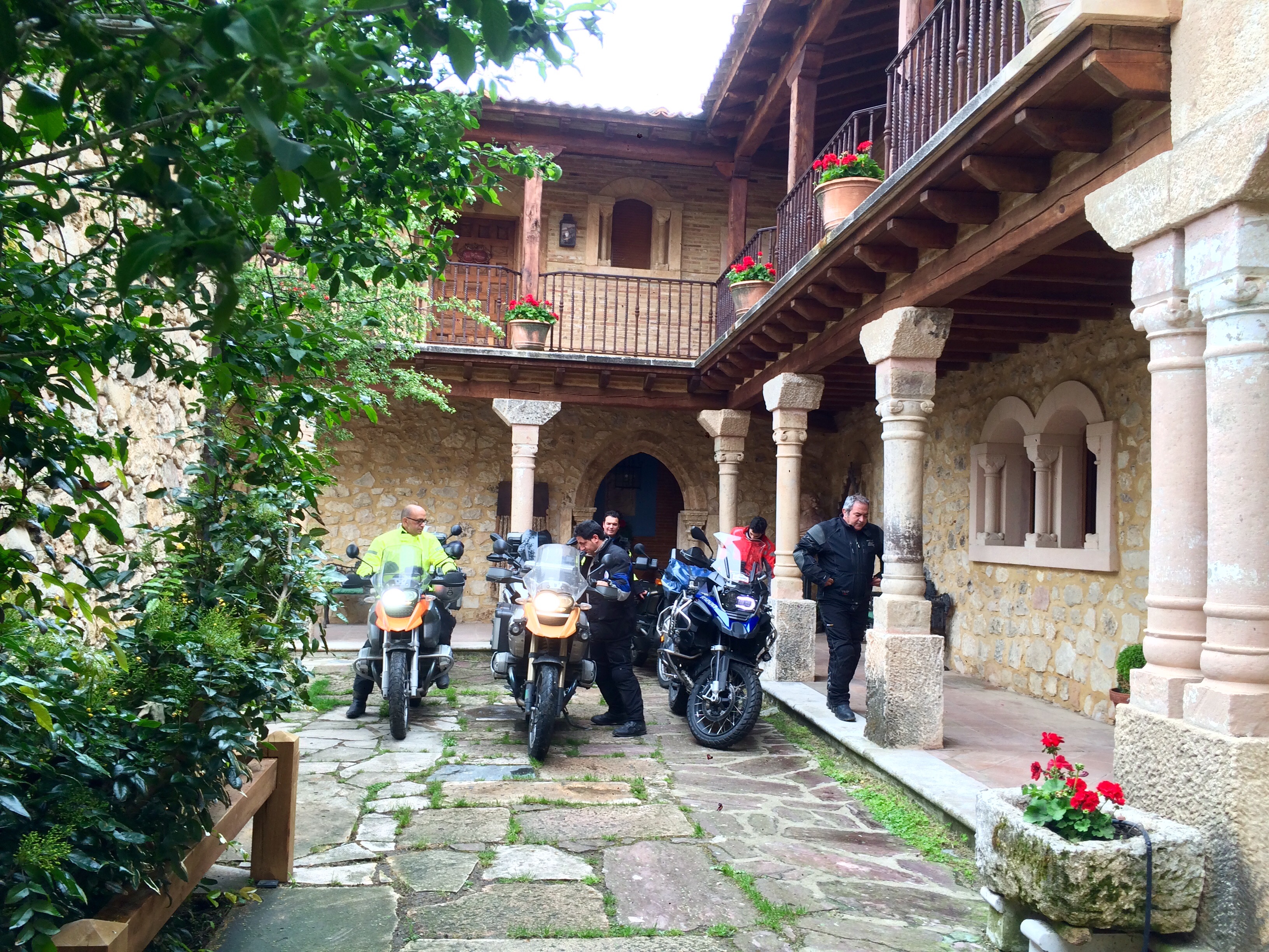 Como ya apretaba el estómago, concreté el mejor sitio para comer en esta zona (y para dormir): La Posada del Duratón. Revuelto de turmas, verduritas a la parrilla, cochinillo asado y postres “ligeritos” de la zona; vamos, un “tentempié”. Su dueño, José Tovar, siempre está presto para atender a los moteros y darles el mejor trato. El propio edificio es espectacular, imitando las antiguas construcciones de la zona (muchos anuncios se han rodado en ella).