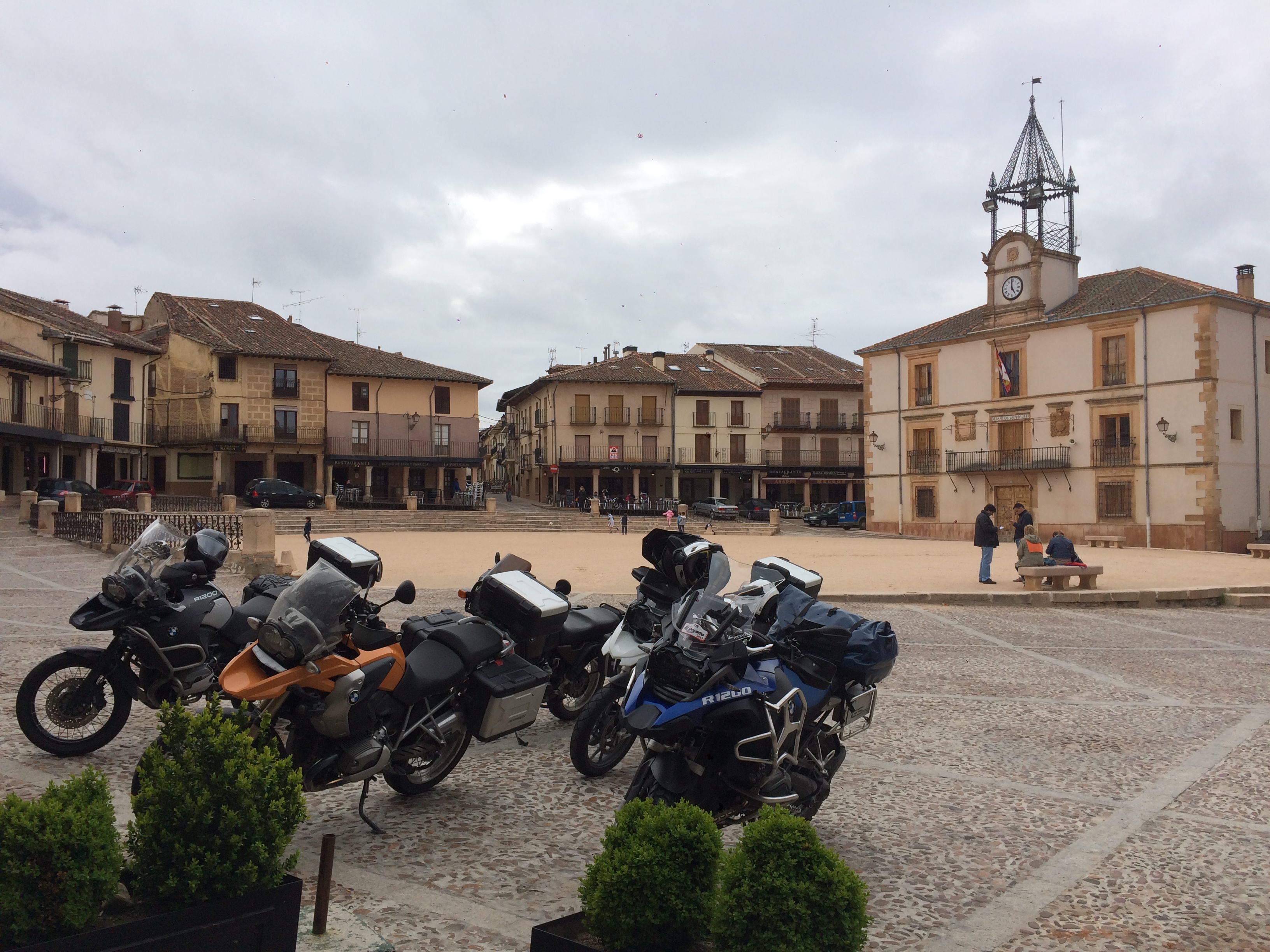 Sin detenernos en Sepúlveda, seguimos ruta por otra pequeña carretera que termina en Riaza. El mejor sitio para tomarse un pincho y otra cervecita de media tarde; ahora sí quedaba menos de una hora para llegar a nuestro destino del primer día. La de Riaza es una plaza muy singular, que utilizan para todo: desde plaza de toros hasta recinto ferial. Bellísima, en cualquier caso, y un buen lugar para descansar y tomar unos pinchos.