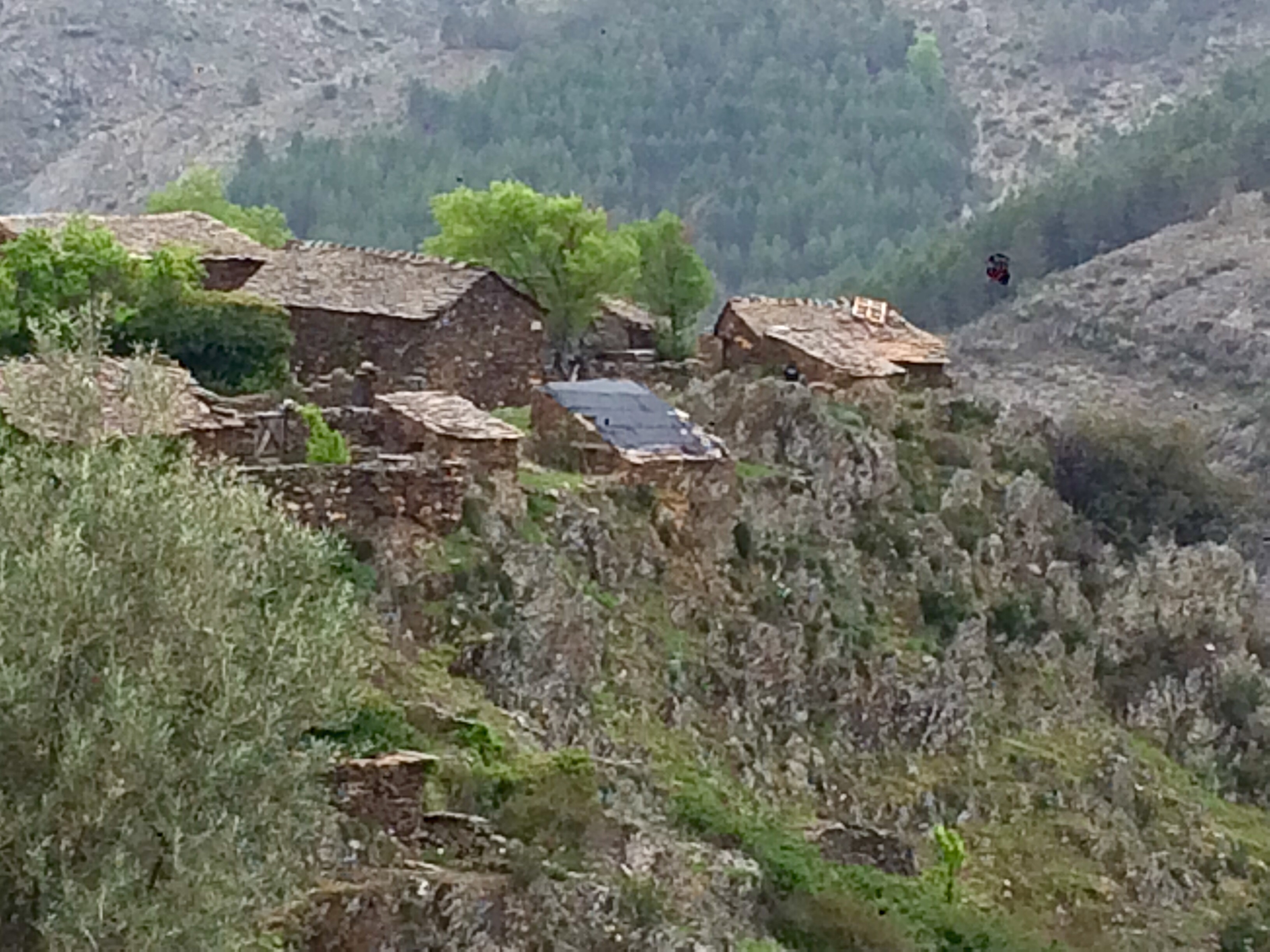 Al terminar este camino forestal, entramos en Majaelrayo: uno de los típicos pueblos de la arquitectura negra. Vale pena recorrer sus calles, su plaza y ver su iglesia (incluso, teniendo tiempo, tomarse un cafetito en el bar El Jabalí); y luego salir del pueblo por la única carretera que existe, camino de el Vado.