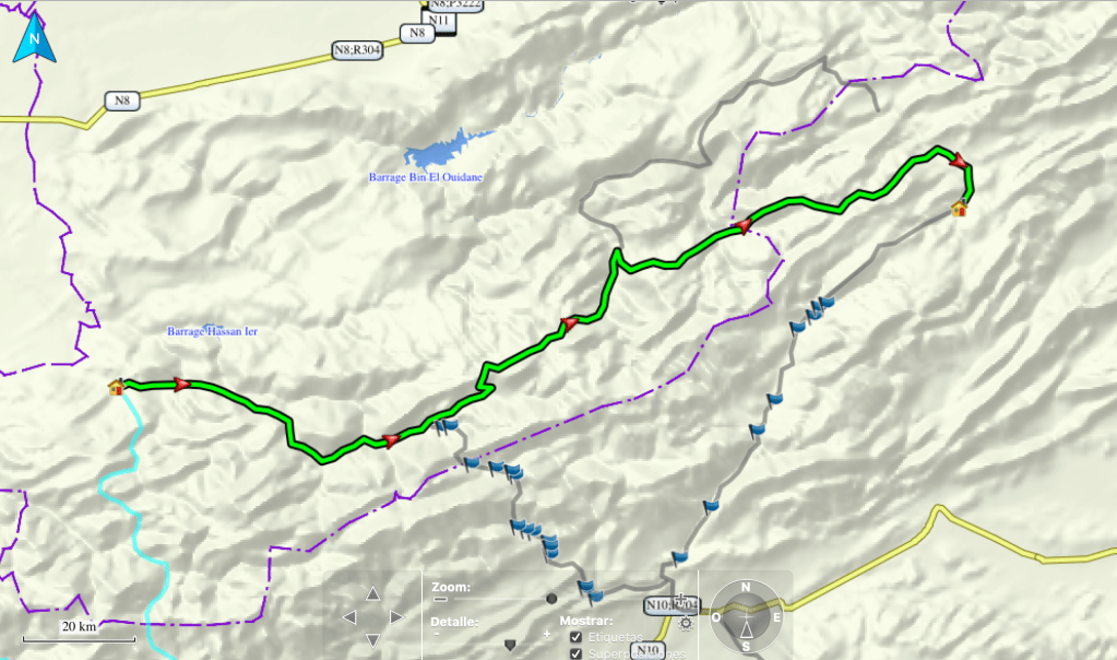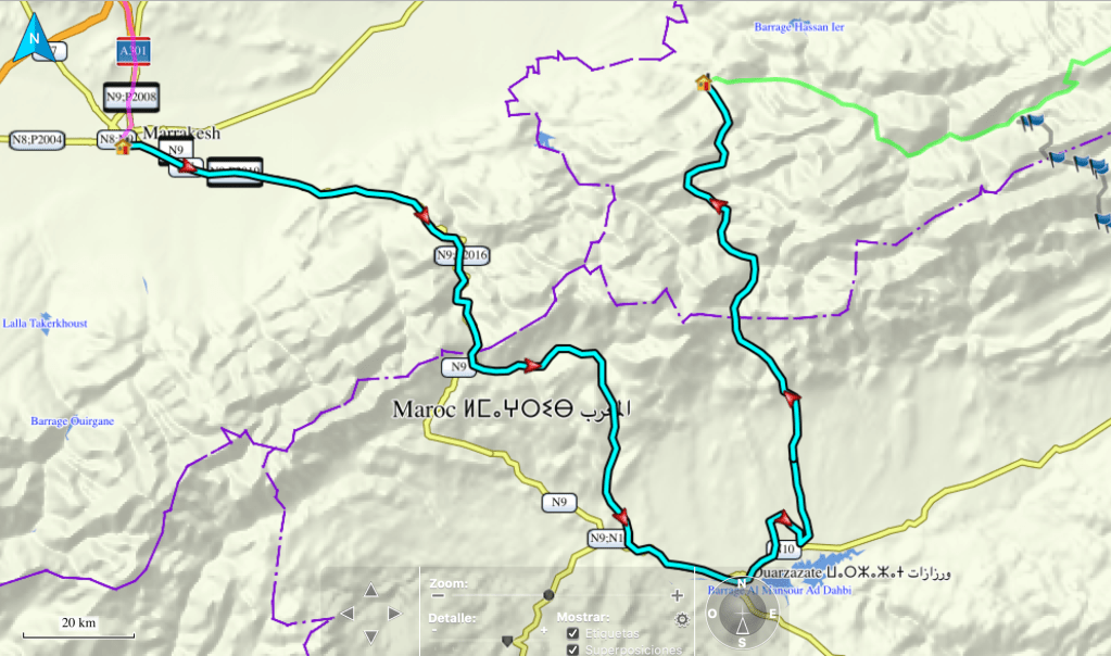 20 de septiembre. 375 kms. Día de montañas. Salvo las carreteras del prinicipio que nos alejarán de la ciudad roja, todas que tomaremos serán «rurales»… con lo que eso significa. Esto es adventouring. Recorreremos el Tizn´Tichka, tomaremos una limonada en Ait ben Haddou, pasaremos frente a las grandes kasbash de Ouarzate y no lanzaremos de lleno a esa carretera que el conocido Miquel Silvestre denominó «carretera extrema». Dormiremos en un pequeño pueblo de montaña, en el que nos atenderán con su típica hospitalidad bereber.